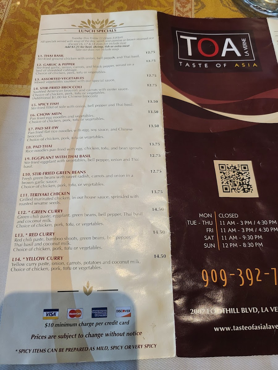 The menu at Taste of Asia offers a thoughtfully curated selection of Asian fusion dishes that blend traditional flavors from Chinese, Thai, and Vietnamese cuisines. It’s the kind of place where you can enjoy familiar favorites alongside more adventurous plates, all presented with straightforward comfort. Whether you’re stopping by for a relaxed lunch or a casual dinner, the menu provides a balanced mix of light soups, hearty curries, and well-seasoned seafood specialties.